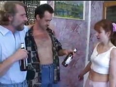 drunk girl brutally fucked and forced to suck two cocks in a forced family rape porn movie.